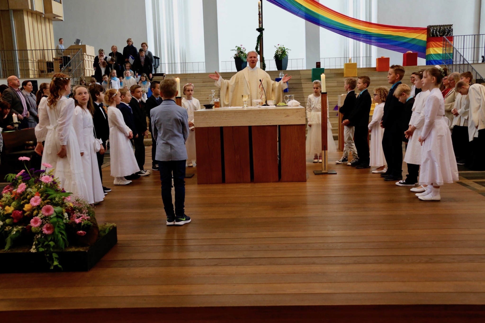 Die Kinder im dritten Schuljahr bereiten sich gemeinsam mit ihren Eltern in regelmäßigen Samstagstreffen auf die Erstkommunion vor. Begleitet werden sie dabei von einem Vorbereitungsteam.